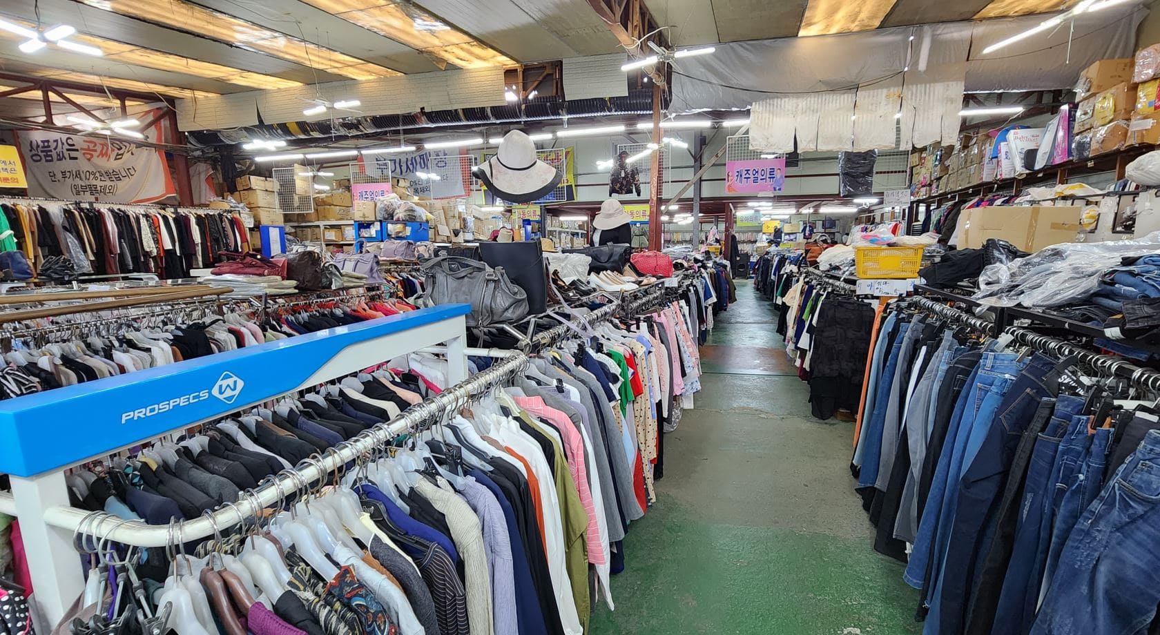 - 기석무역 구제매장 – 원조 매장, 120평 규모, 다양한 의류와 액세서리, 저렴한 가격
