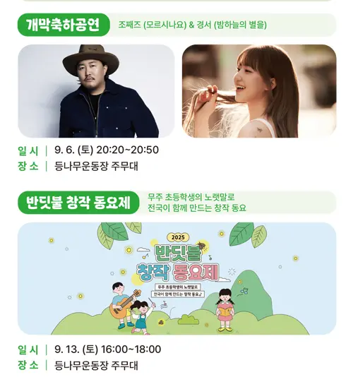 무주반딧불축제 공연정보(출처: 무주반딧불축제 홈페이지)